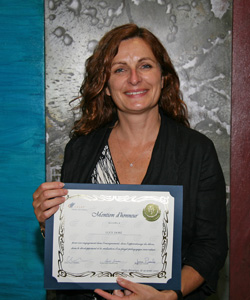- Pour la relation pédagogique de qualité qu’elle a su développer avec ses élèves grâce à son expertise, à sa bonne humeur et à son dynamisme constants.