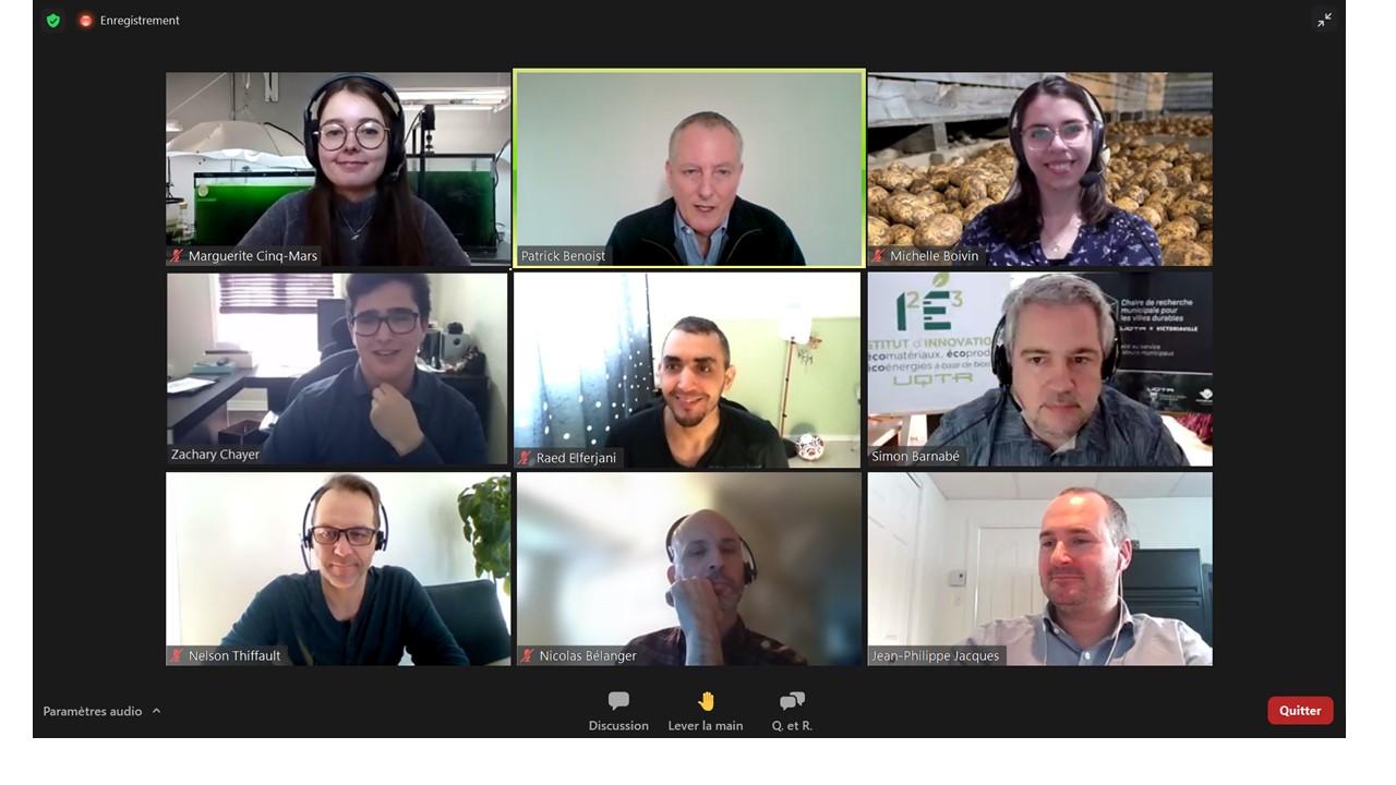 C’est aux côtés de Marguerite Cinq-Mars, étudiante à la Maîtrise en Sciences de l’environnement à l’UQTR et Michelle Boivin, finissante à la maîtrise en biologie cellulaire et moléculaire à l’Université du Québec à Trois-Rivières, que Zachary a présenté les résultats de ses travaux. Ces dernières ont présenté leurs travaux de recherche portant respectivement sur «la culture des microalgues en eaux usées industrielles» et «la valorisation des résidus forestiers par la production d’extractibles bioactifs et leur application en agriculture». L’opportunité de présenter les travaux de cet étudiant collégial au sein du réseau 2RLQ est à la fois une reconnaissance de la formation et de la recherche au collégial ainsi que du travail exemplaire de Zachary en recherche appliquée.